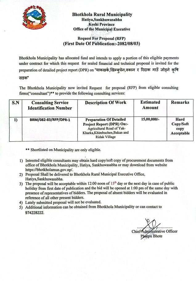 सार्वजनिक खरिद/बोलपत्र सूचना
